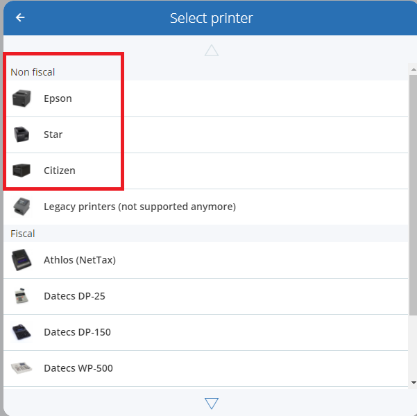 After you made sure that the printer is working, you will need to go to the Printers menu point from the POS and press on +.