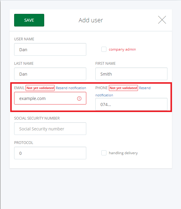 A new window will open, where you can send a resend the notification to activate the user, depending on the details provided, email or phone.