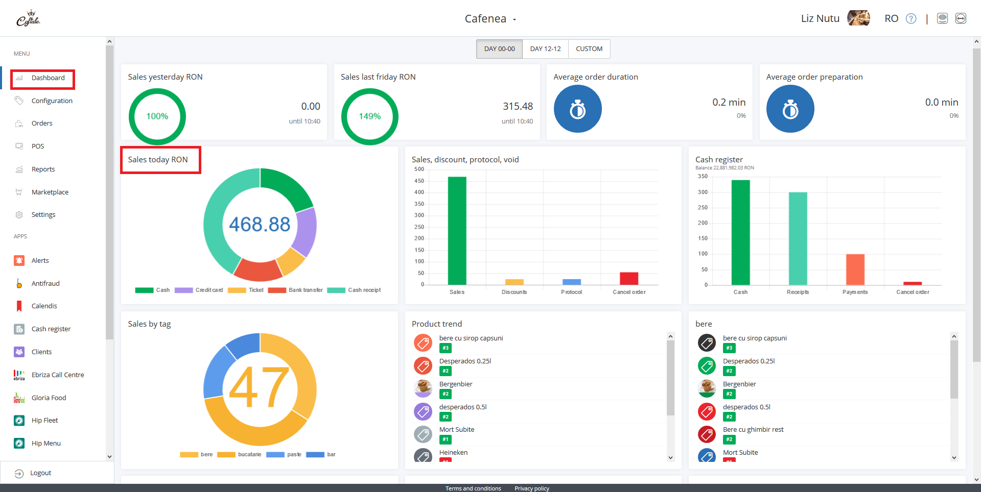 You can see the sales that you had today from the Control Center in Ebriza, in the Dashboard tab.