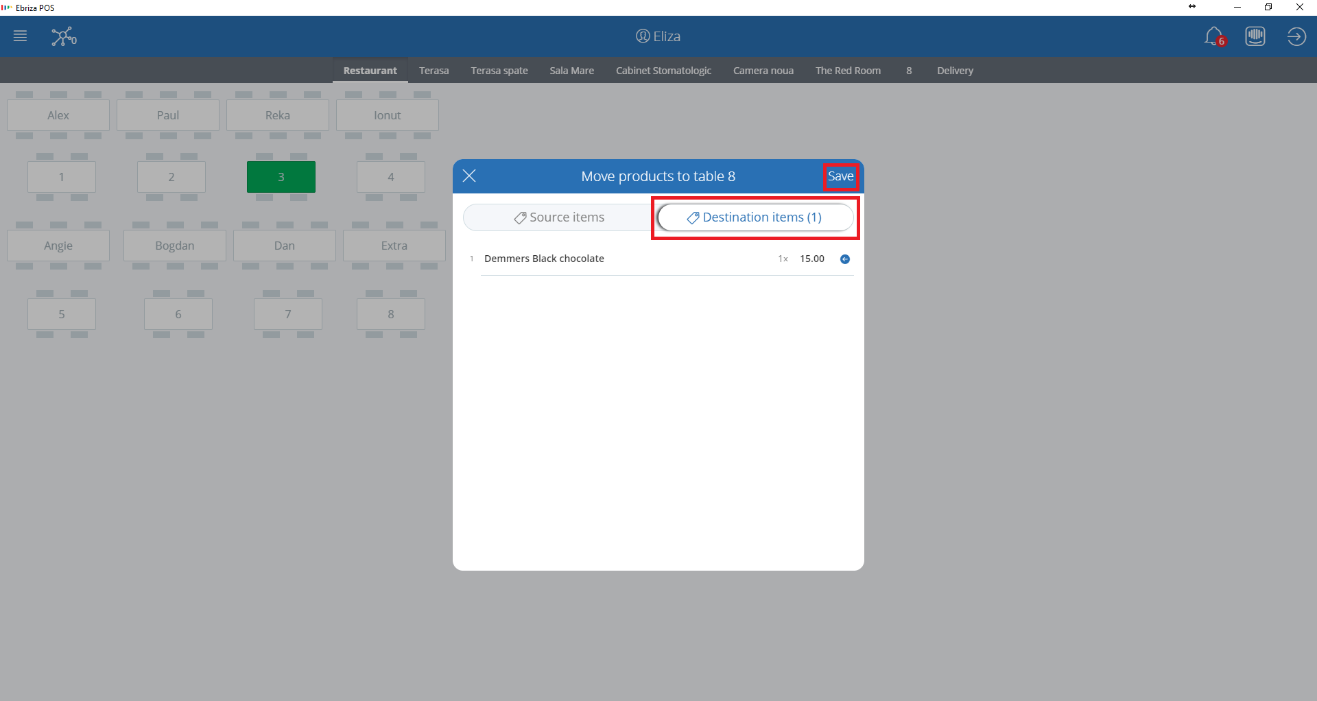 CAREFUL: You can only move products to available tables or tables that are open on your user.