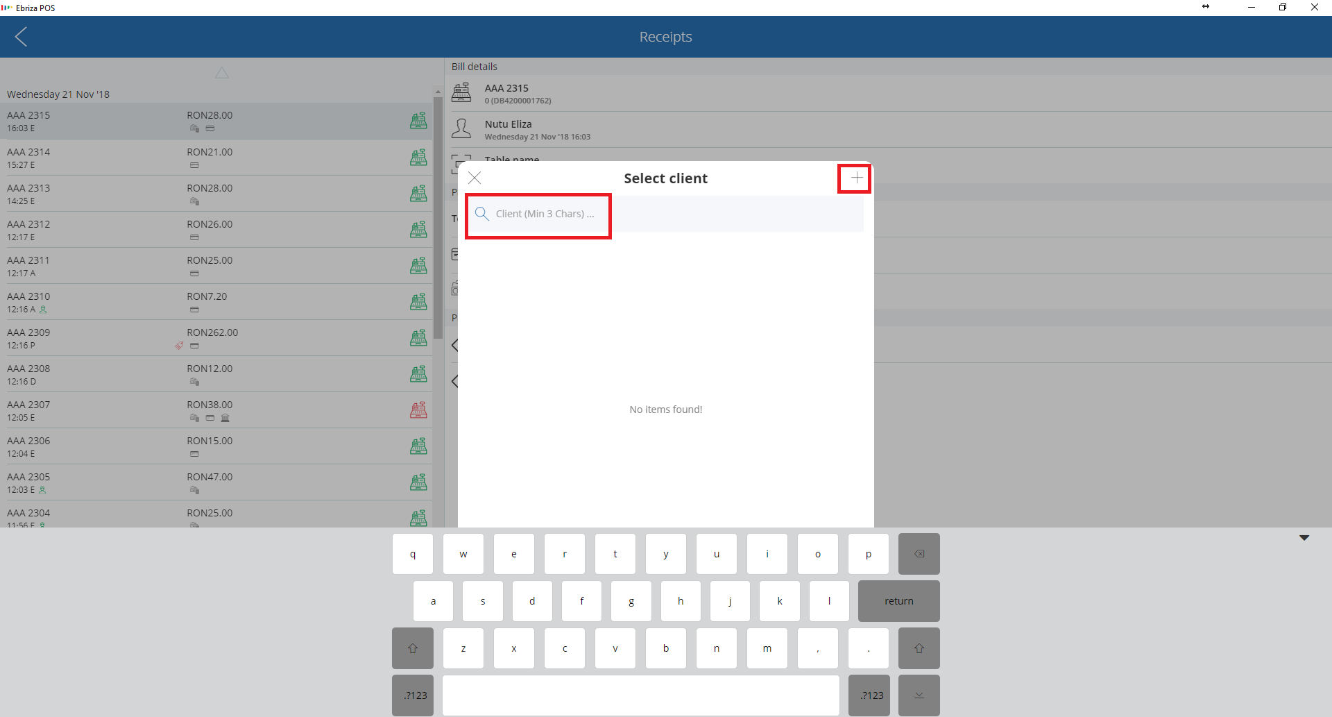 2. Select the customer or add a new one (from the + button) and push the send button.