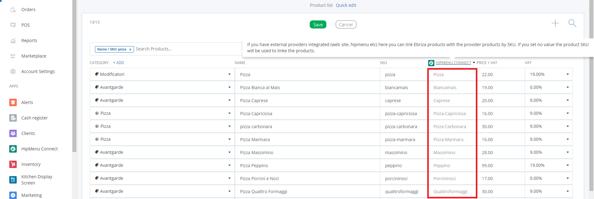 Also you can edit the SKUin Ebriza, after the connection was made to the external providers so that for every external provider the SKU to match.