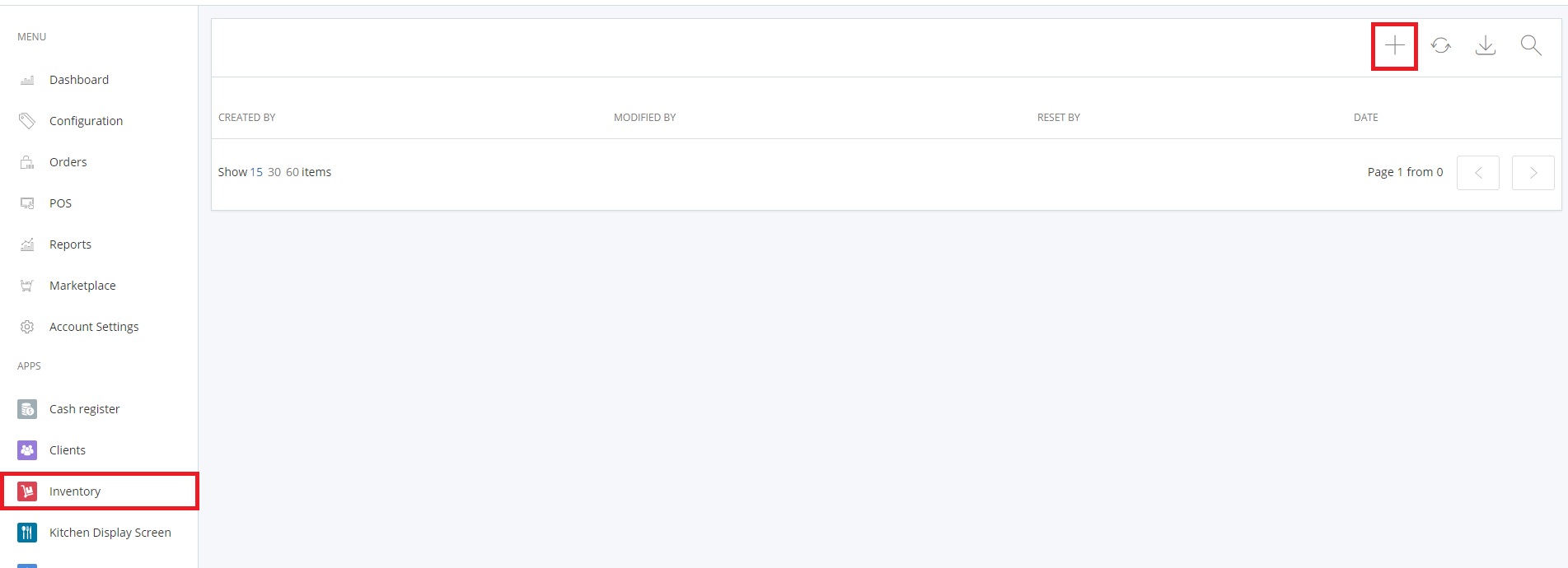 To save you current stock, you will need to go to the Inventory app and press the + button to add a new Inventory.