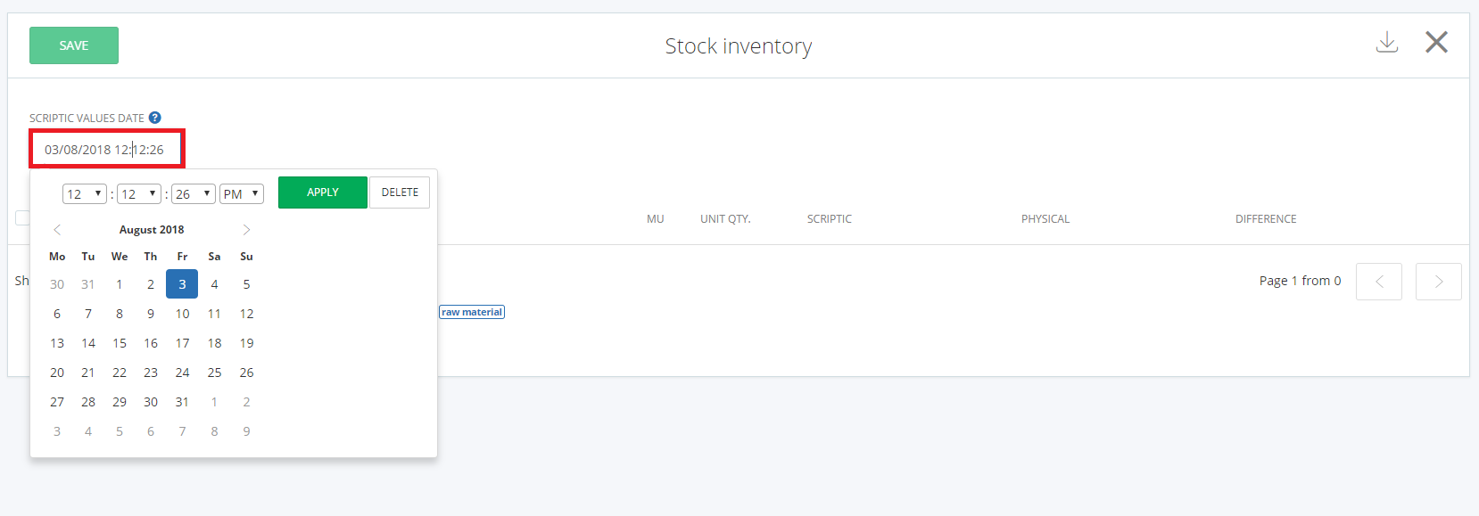After you selected to add a new Inventory you will need to set the date and time for when you are making the inventory.