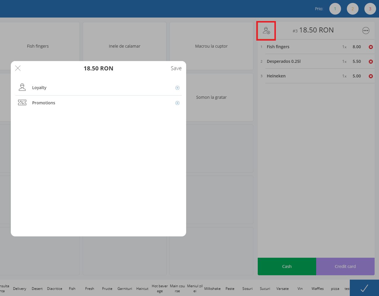 2. Once you have marked the products on the table, go to order Options, click Loyalty / Promotions.