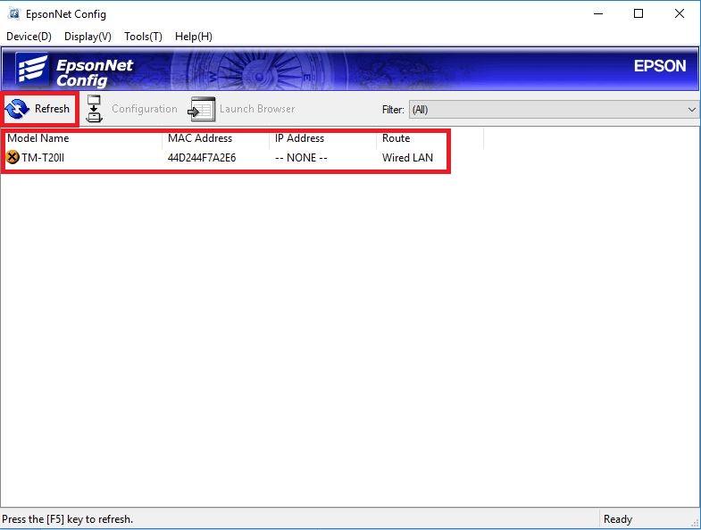 8. After you filled in those fields, click on the "Transmit" button. After following these steps, the printer will look like below in Epson Net Config: