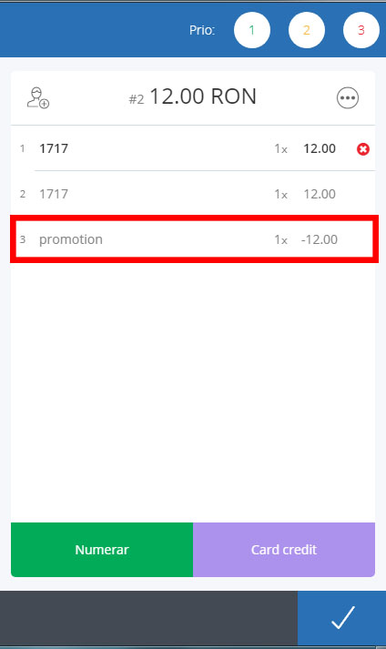 - Apply manually: - after marking the product and before issuing the fiscal receipt you can add the discount manually: