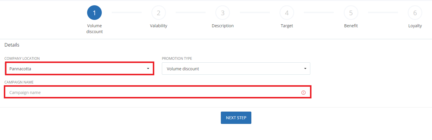 - Select the location you want to apply the discount on, select the type of discount and give it a name so you can easily find it in the POS.